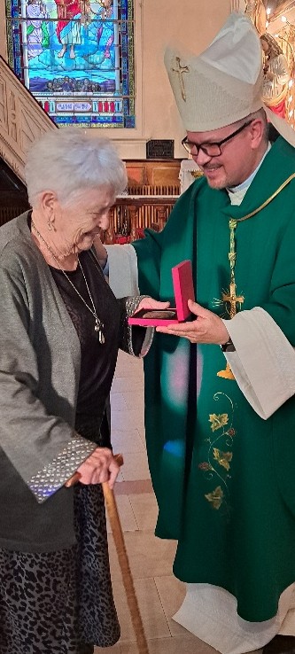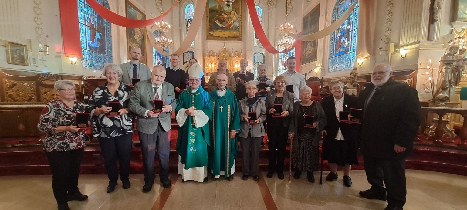 Le dimanche 3 novembre 2024, à 14 h, en l'église Sainte-Famille de Cap-Santé, ces personnes admirables ont reçu chacune une médaille honorifique des mains de Mgr Juan Carlos Londoño nouvel évêque auxiliaire à Québec, lors de la messe. Cette œuvre d'orfèvrerie a été spécialement conçue et réalisée pour les 350 ans du diocèse par M. Martin Pontbriand, un artiste de Neuville.